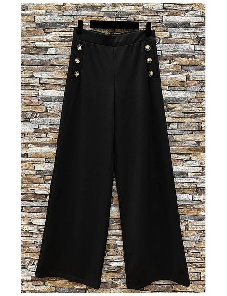 Pantalon large avec boutons, élastique à la taille, chic et tendance.