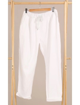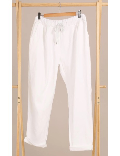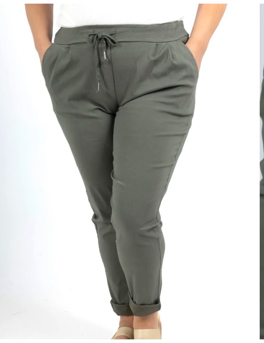 Pantalon lycra à pinces avec taille élastique. Taille normale/semi-haute, coupe droite . 2 poches avant sur les côtés. Matière très stretch. Le best seller de la boutique.