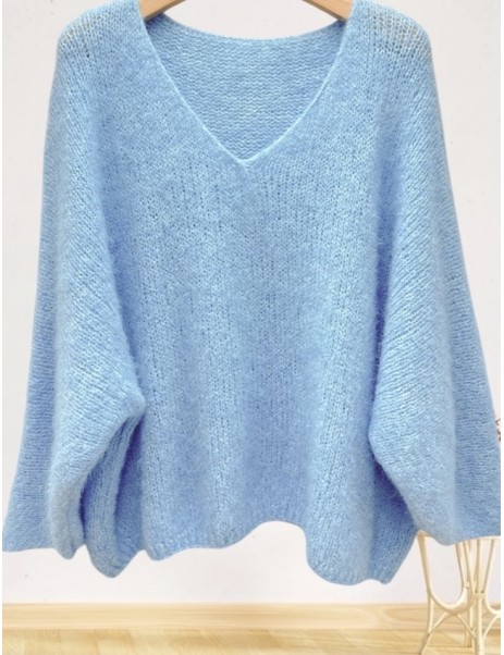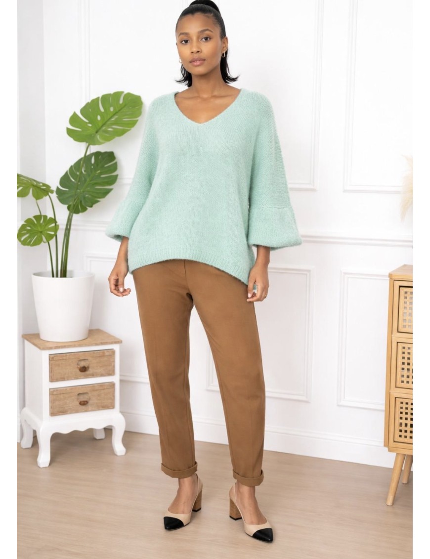 Pull femme automne-hiver, mélange doux alpaga et laine, manches chauves-souris, idéal pour la saison froide.