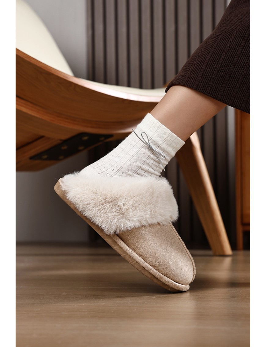 Ces chaussons tout doux en suédine et doublés d’une fausse fourrure ultra moelleuse enveloppent tes pieds de chaleur et de confort.