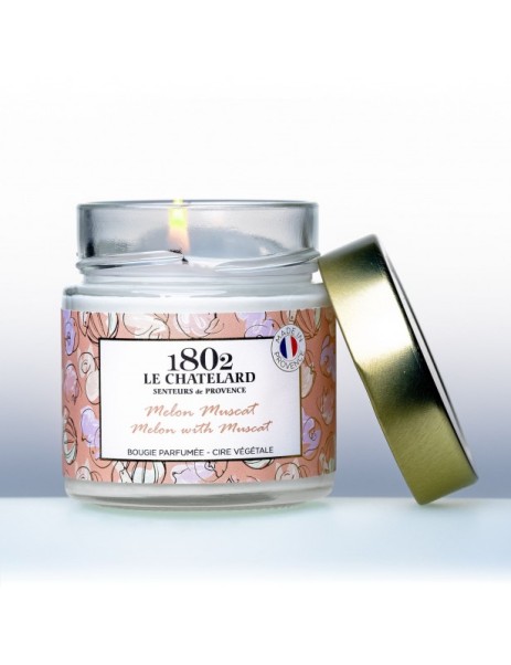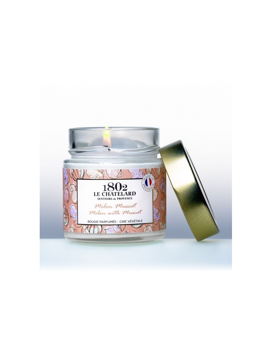 Dans cette bougie à la cire végétale, nous illustrons le mariage entre deux célèbres produits locaux : le melon et le muscat. Nous nous sommes inspirés du Melon de Cavaillon (qui attend sa labellisation IGP) sucré, juteux, gorgé de soleil, et du Muscat de Beaumes de Venise, au caractère doux, équilibrant l’association. On raconte que cette recette serait née sur les tables des Papes d’Avignon il y a plus de 600 ans.