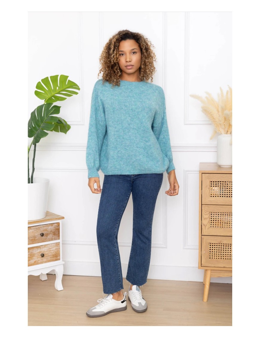Pull col montant mélange laine et alpaga, idéal pour la saison.