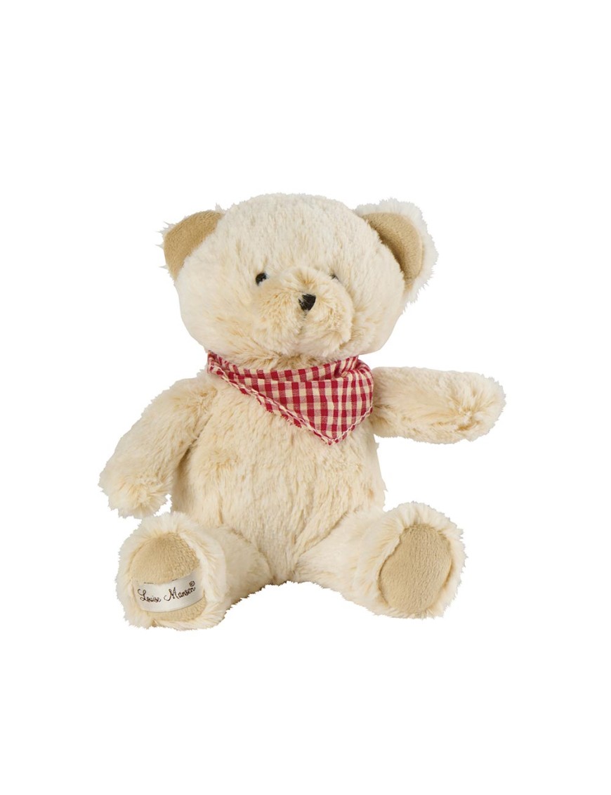 Ours crème, avec bandana à carreaux rouges.