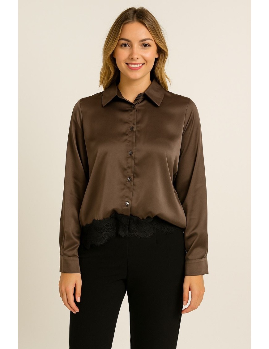 Succombez au charme de ce magnifique chemisier femme satiné qui allie élégance et féminité. Le Chemisier avec ses détails en dentelle est la pièce sophistiquée parfaite pour créer des looks raffinés.