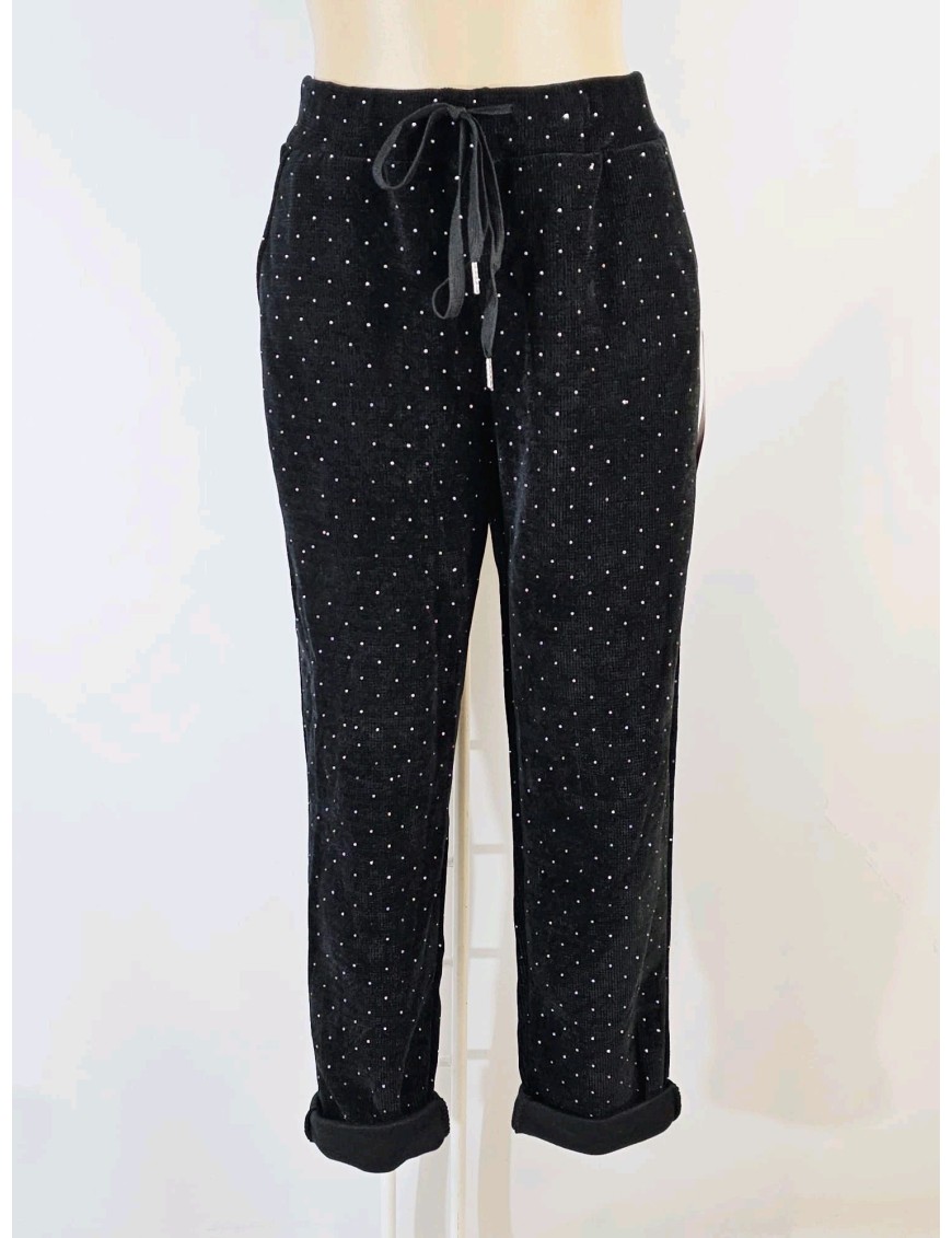 Pantalon velours coupe normale, resserré avec un cordon, très original avec des strass.