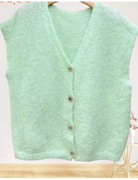 Gilet doux sans manches en laine et alpaga, boutonné, col V, idéal pour le printemps.