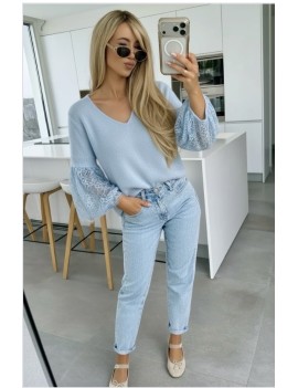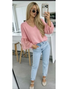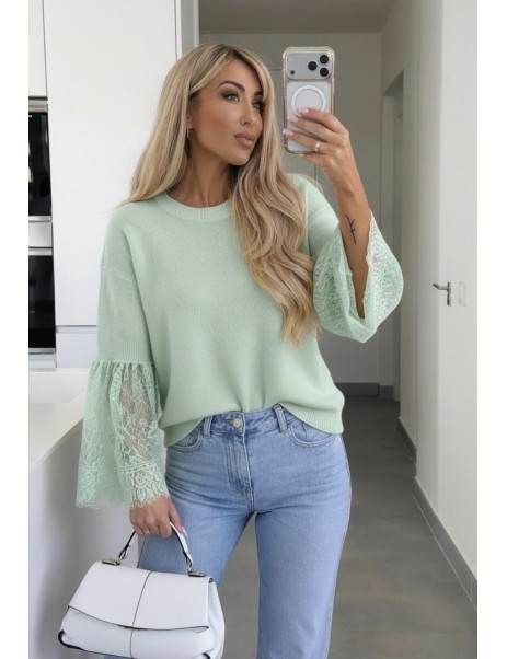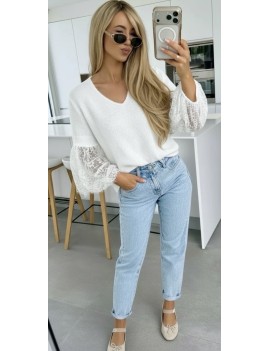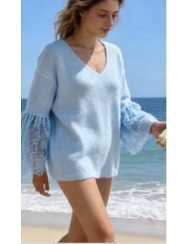 Un pull en alpaga original avec les manches en dentelle, la dentelle le petit côté tendance de la saison.