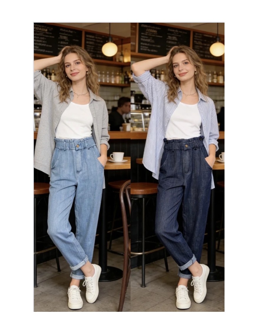 Pantalon léger en coton italien, 2 poches à l’avant, passants pour ceinture, très confortable mais donne une tenue chic. Un joli bleu foncé qui se coordonne avec beaucoup de coloris.