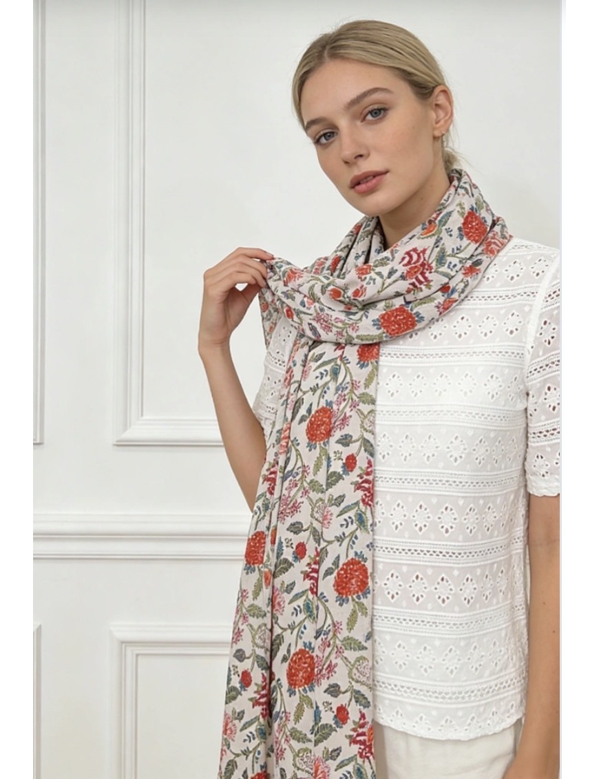 Une jolie écharpe fleurie, aux motifs colorés, pour illuminer vos tenues