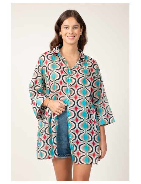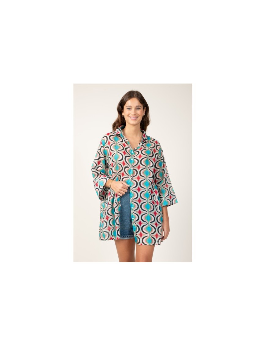 Chemise ou Tunique ample Acqua "boutonnage avant et arrière, base droite, un joli coton exceptionnellement léger et confortable, qui donnera du pep's à votre tenue. Elle taille très bien. Imprimé exclusif.