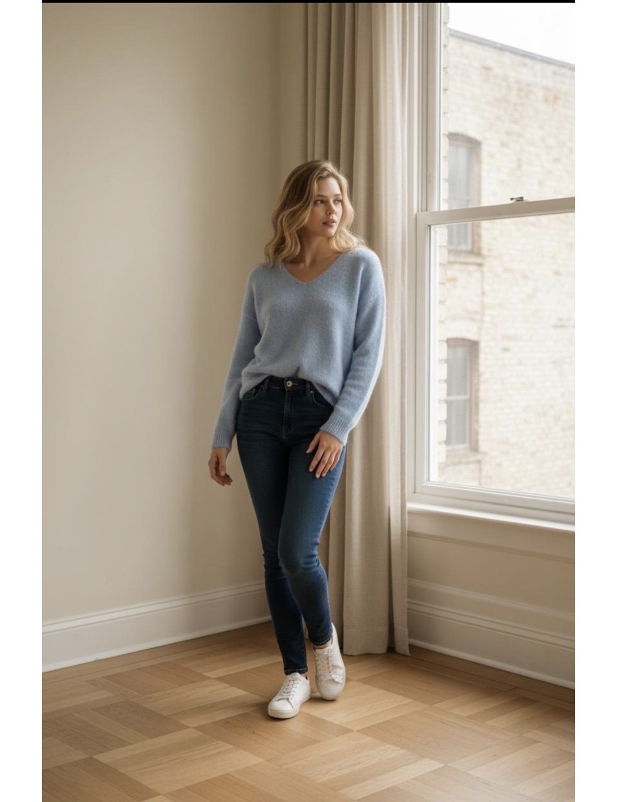 Ce pull en alpaga et laine, encolure enV, très doux et confortable, un classique dans votre garde-robe.