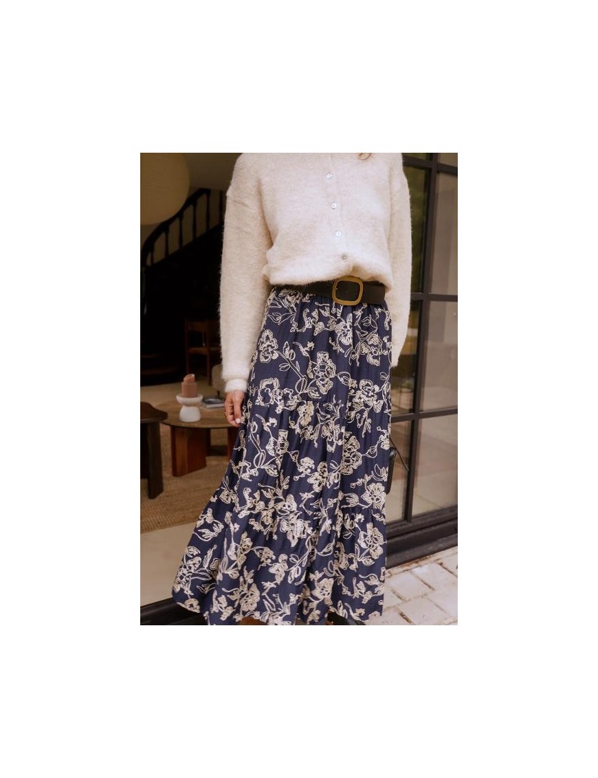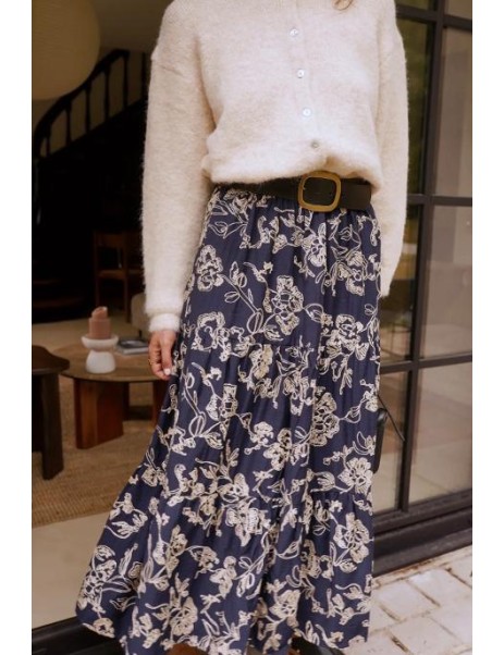 La jupe dévoile une élégance subtile et naturelle. Son imprimé floral crème se pose délicatement sur un fond beige sable aux nuances taupe, pour un rendu doux et raffiné. Sa coupe longue et fluide accompagne les mouvements avec légèreté et allonge la silhouette.