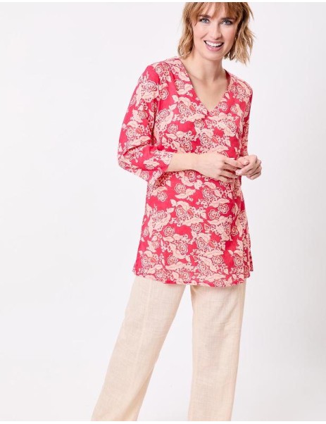 Tunique femme imprimée en voile de coton biologique iconique, légère et douce, adaptée à toutes les morphologies.