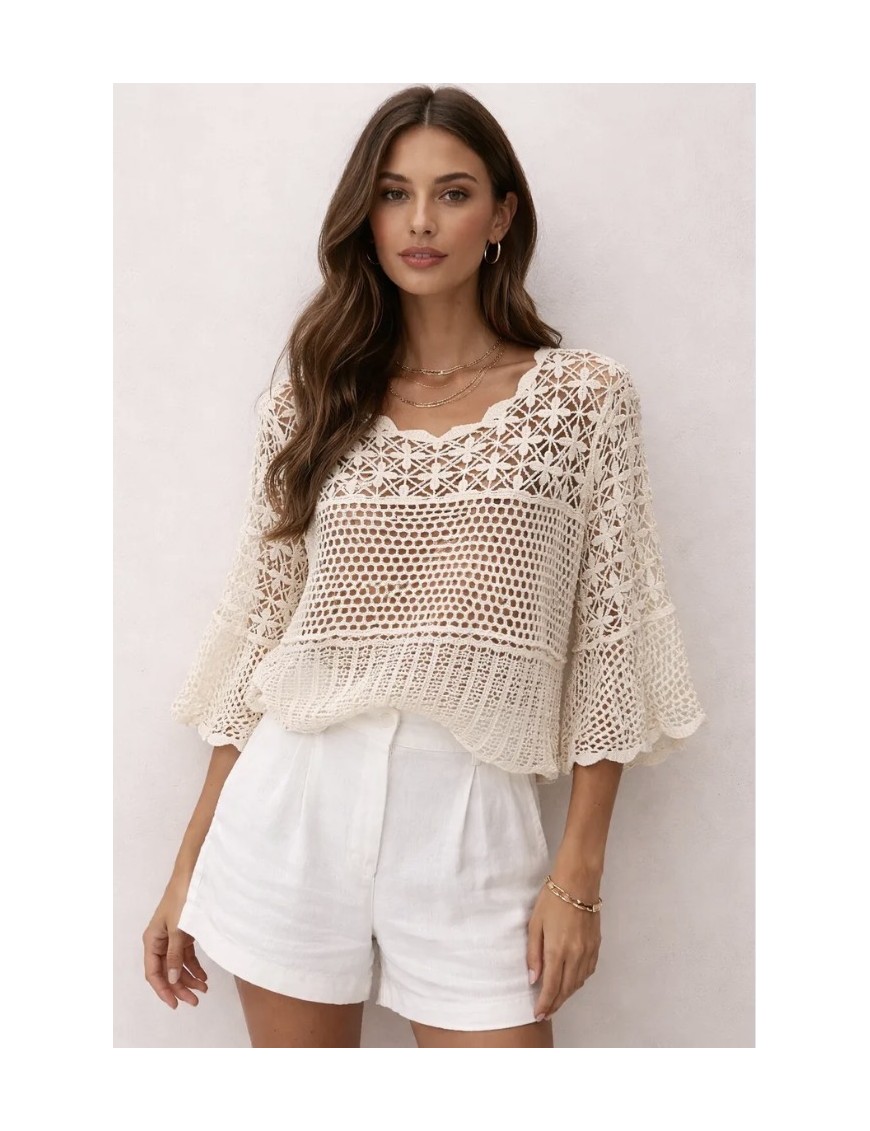 Pull ajouré en crochet au design raffiné et féminin.